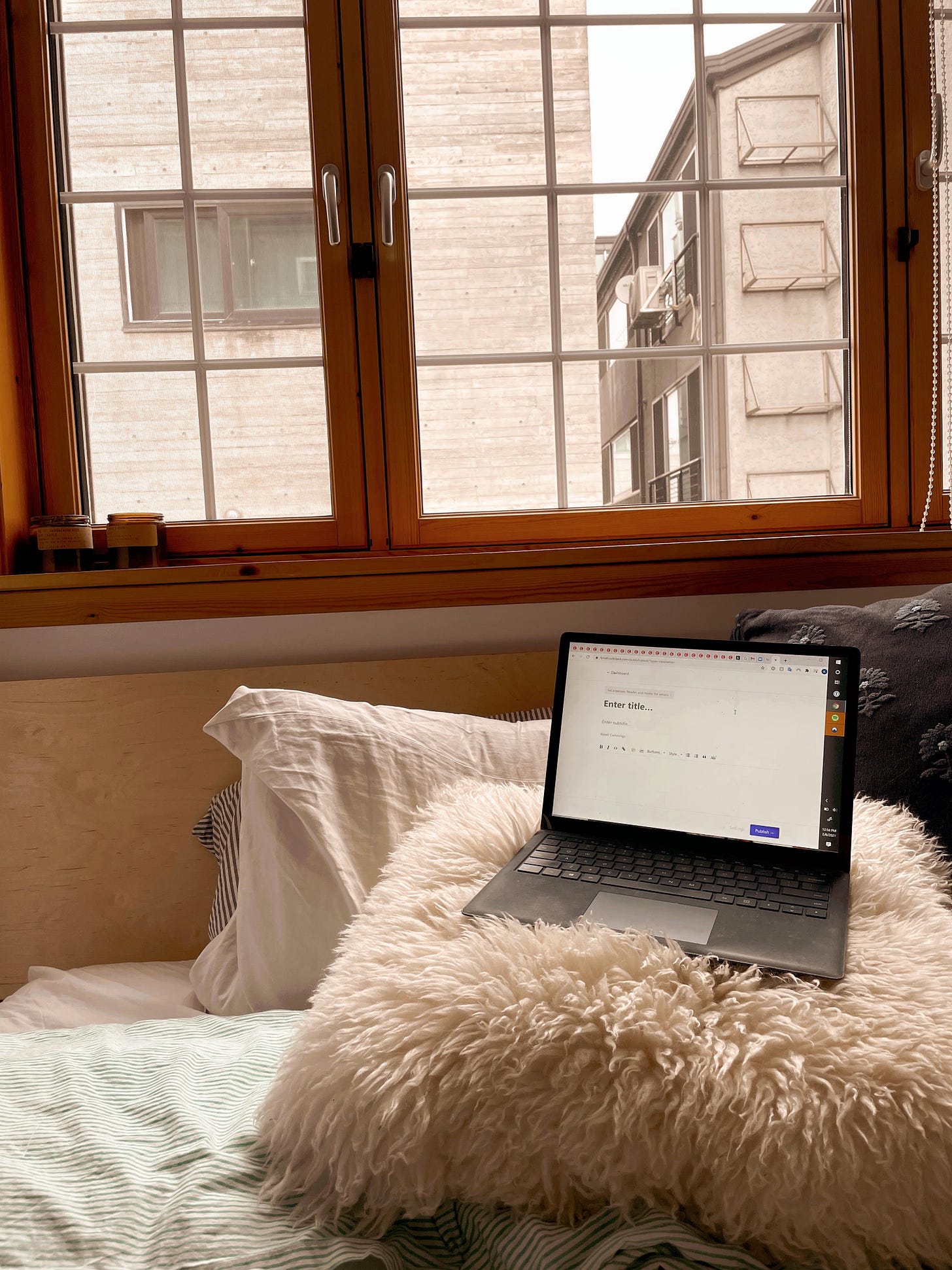 Good morning! Writing to you from my bed, sitting backwards, to limit the glare and soak my eyes in “partly sunny”. The forecast predicts 50(!) degrees today. I woke up, knowing this, feeling lighter and happier than I have all week.